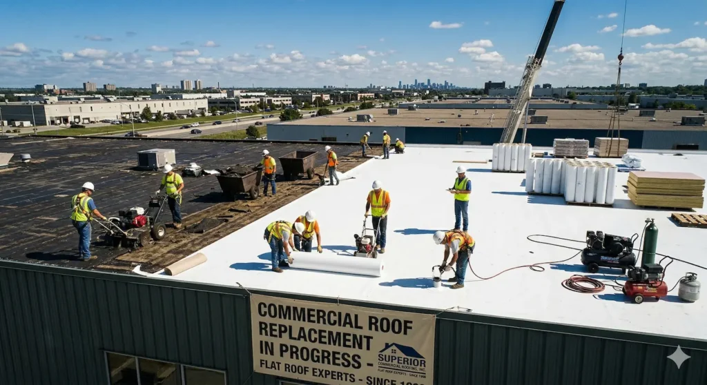 If leaks are recurring, insulation is saturated, or the membrane is at end-of-life, replacement often lowers total cost of ownership. We’ll inspect and provide a side-by-side repair vs. replace analysis.