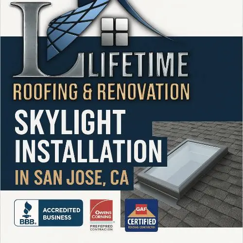 “At Lifetime Roofing & Renovation, we are proud to be a top-rated skylight specialist based in San Jose, CA, serving Santa Clara, San Mateo, Santa Cruz, Contra Costa, and San Francisco counties. We specialize in high-performance skylight solutions, including new installations, glass replacements, leak repairs, and solar-powered upgrades.